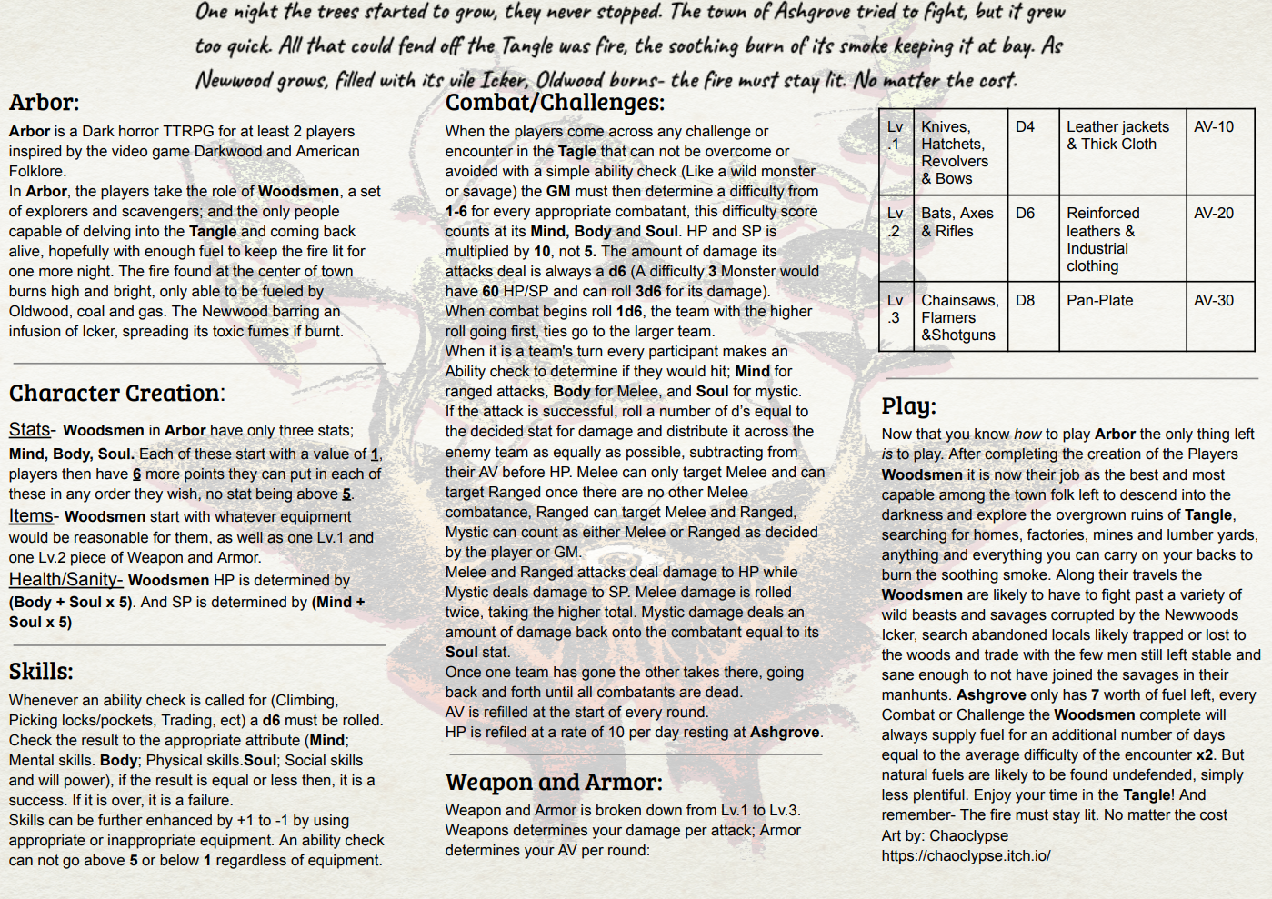 Arbor is a short one page TTRPG made for the One-Page RPG Jam 2025.